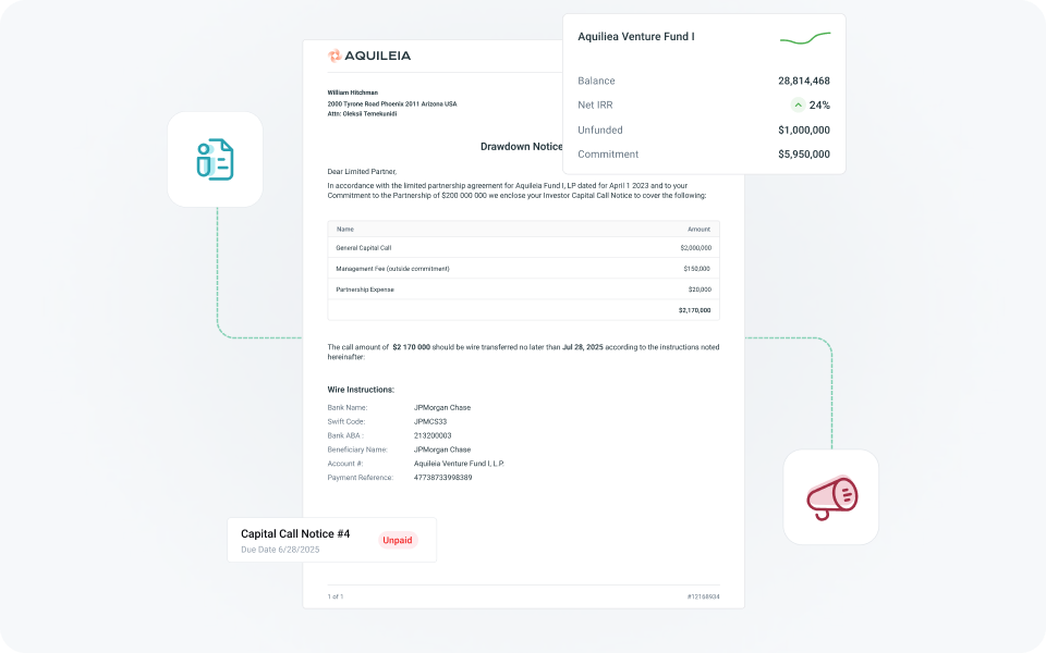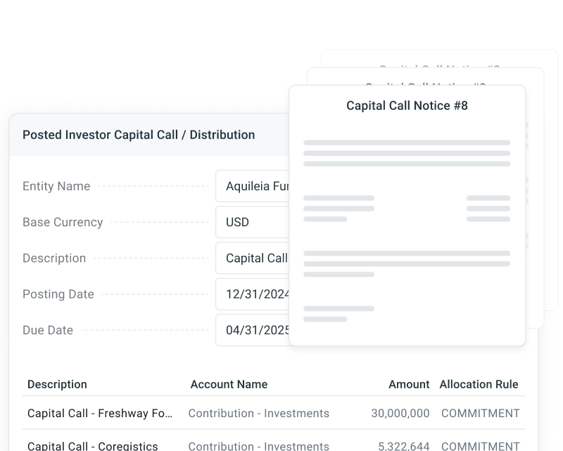 Investor Transfers, Subsequent Close Re-balances, Management Fee Calculations with Offsets - all details fully customizable.